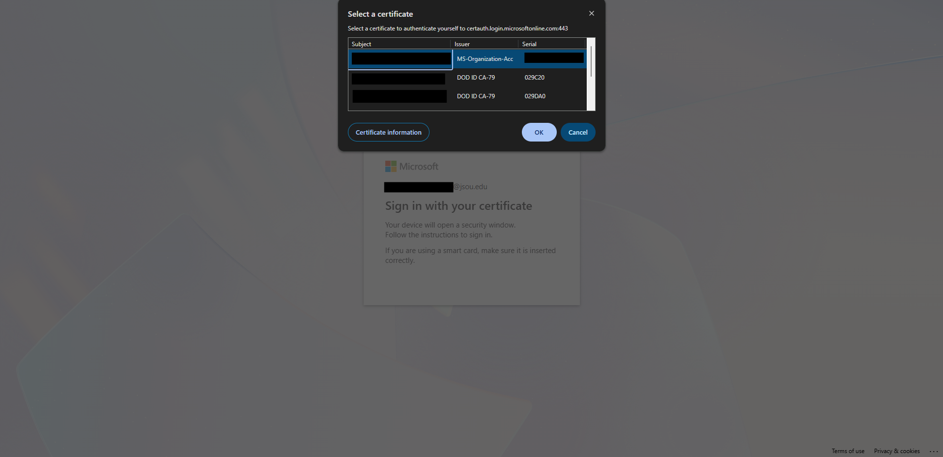- Select the newest (Most-up-to-date) certification from the "Select a certificate" menu